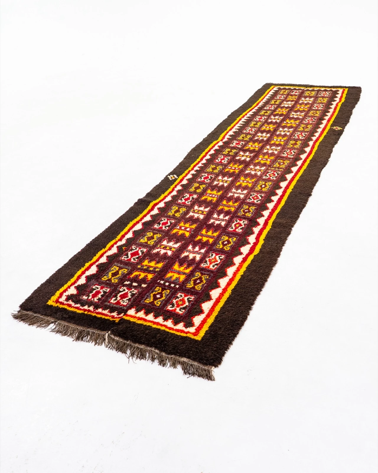 Tejido estrecho ideal para pasillos o entradas, elaborado con técnicas tradicionales de tejido plano.