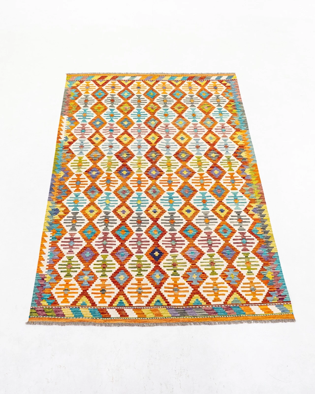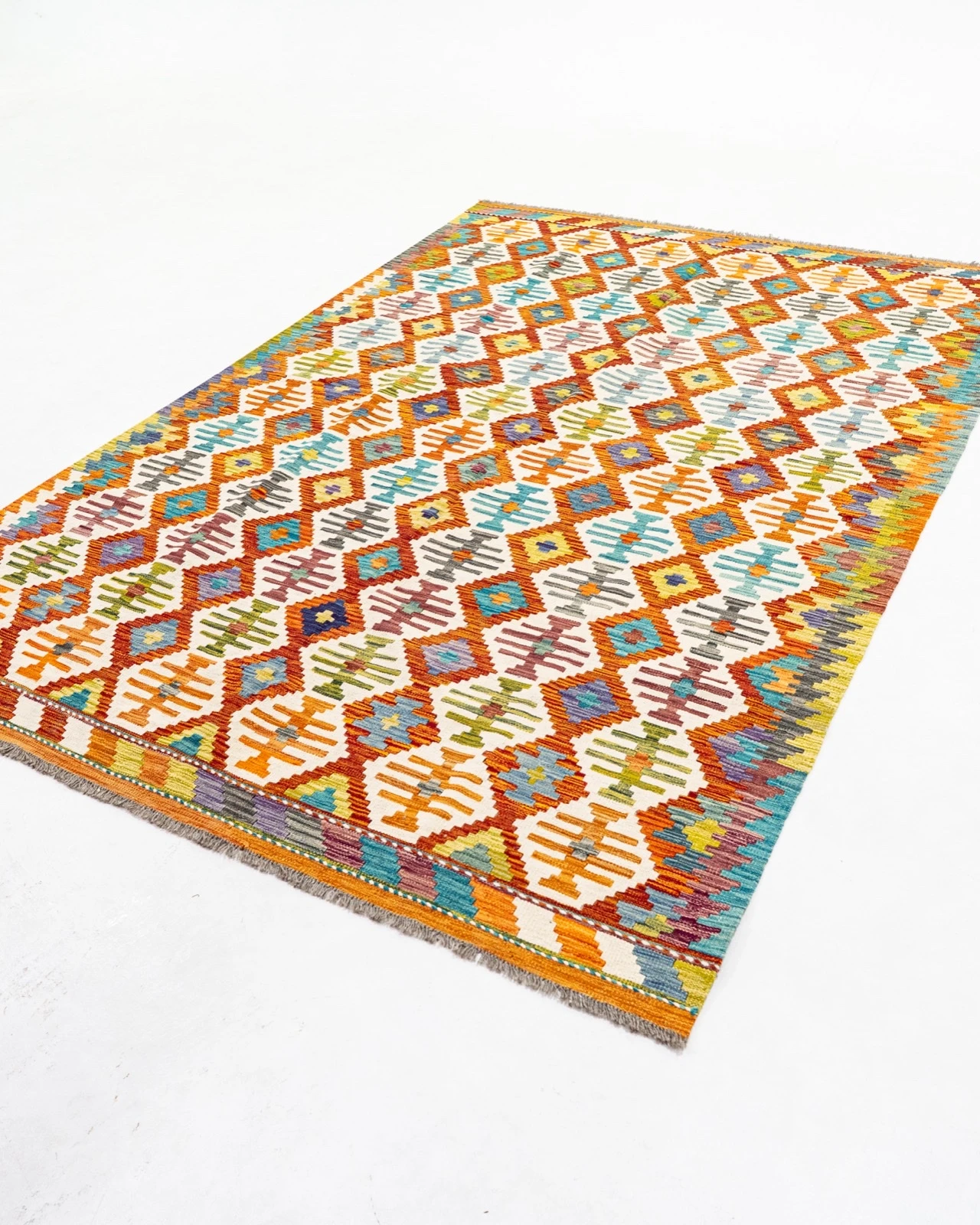 Tejido plano artesanal hecho a mano por comunidades nómadas, conocido por sus patrones geométricos y colores vivos.