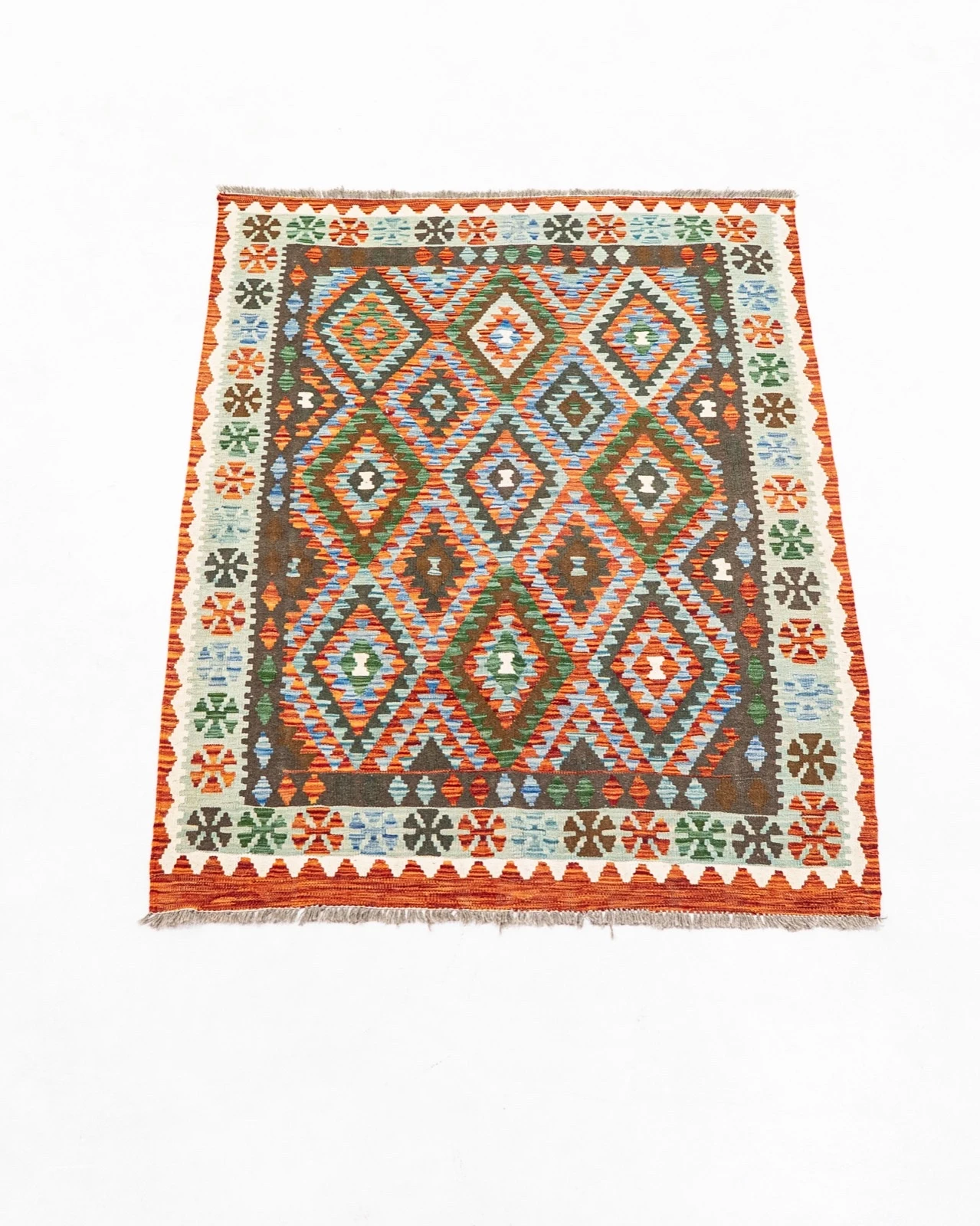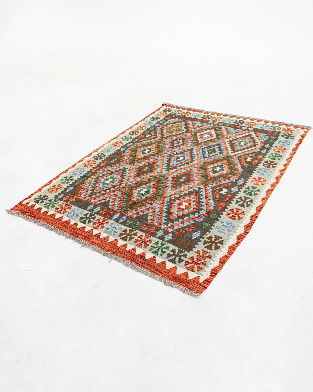 Tejido plano artesanal hecho a mano por comunidades nómadas, conocido por sus patrones geométricos y colores vivos.