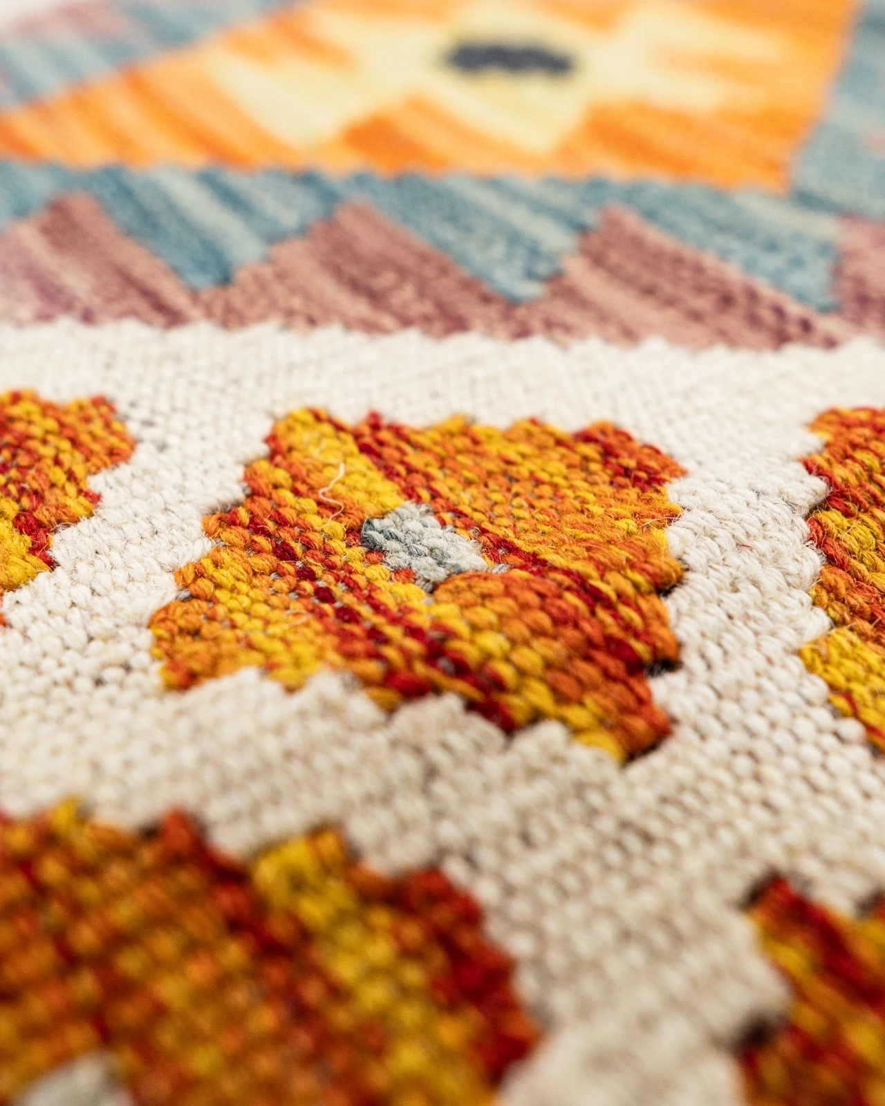 Tejido plano artesanal hecho a mano por comunidades nómadas, conocido por sus patrones geométricos y colores vivos.