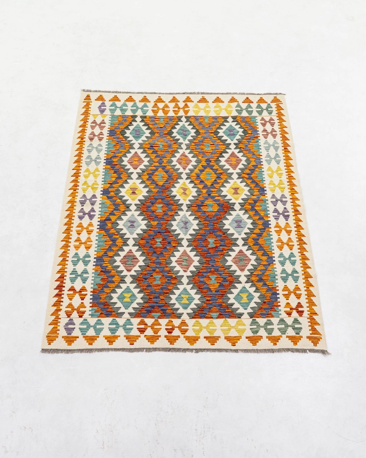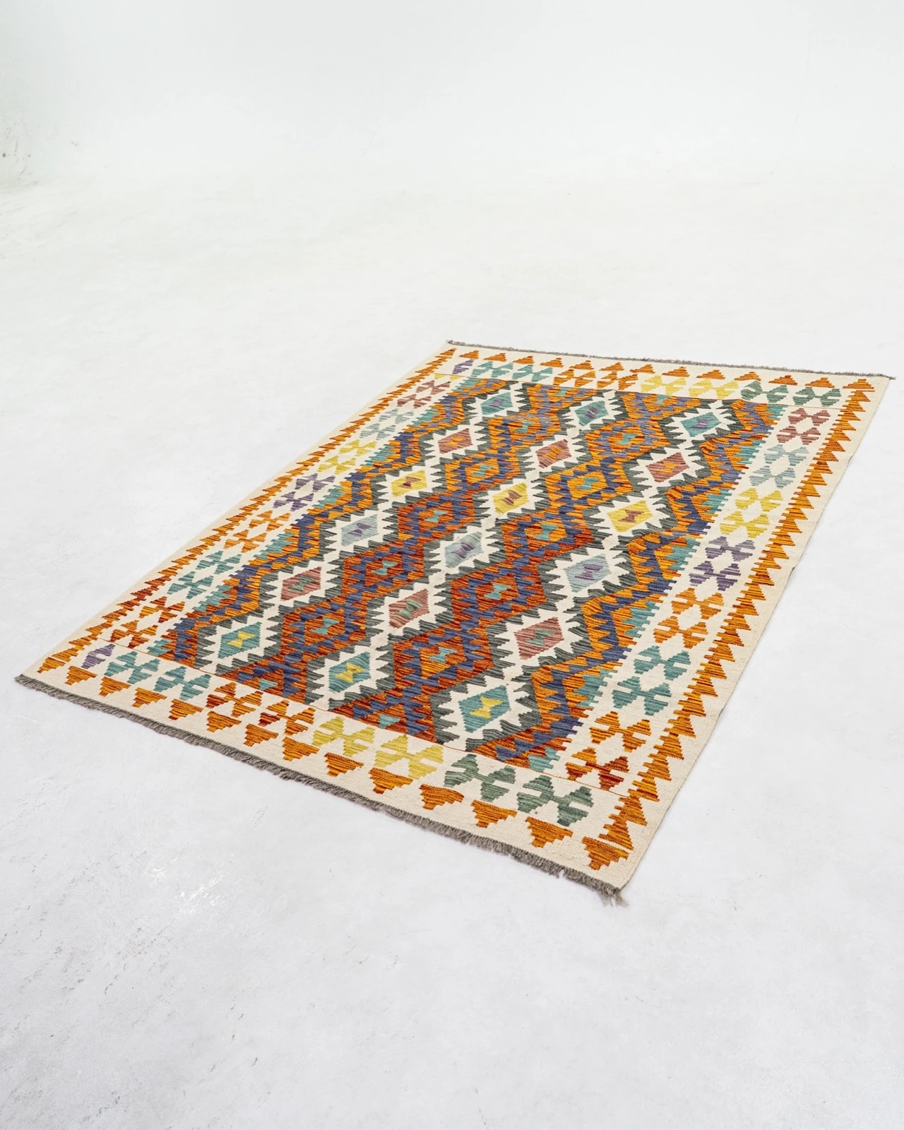 Tejido plano artesanal hecho a mano por comunidades nómadas, conocido por sus patrones geométricos y colores vivos.