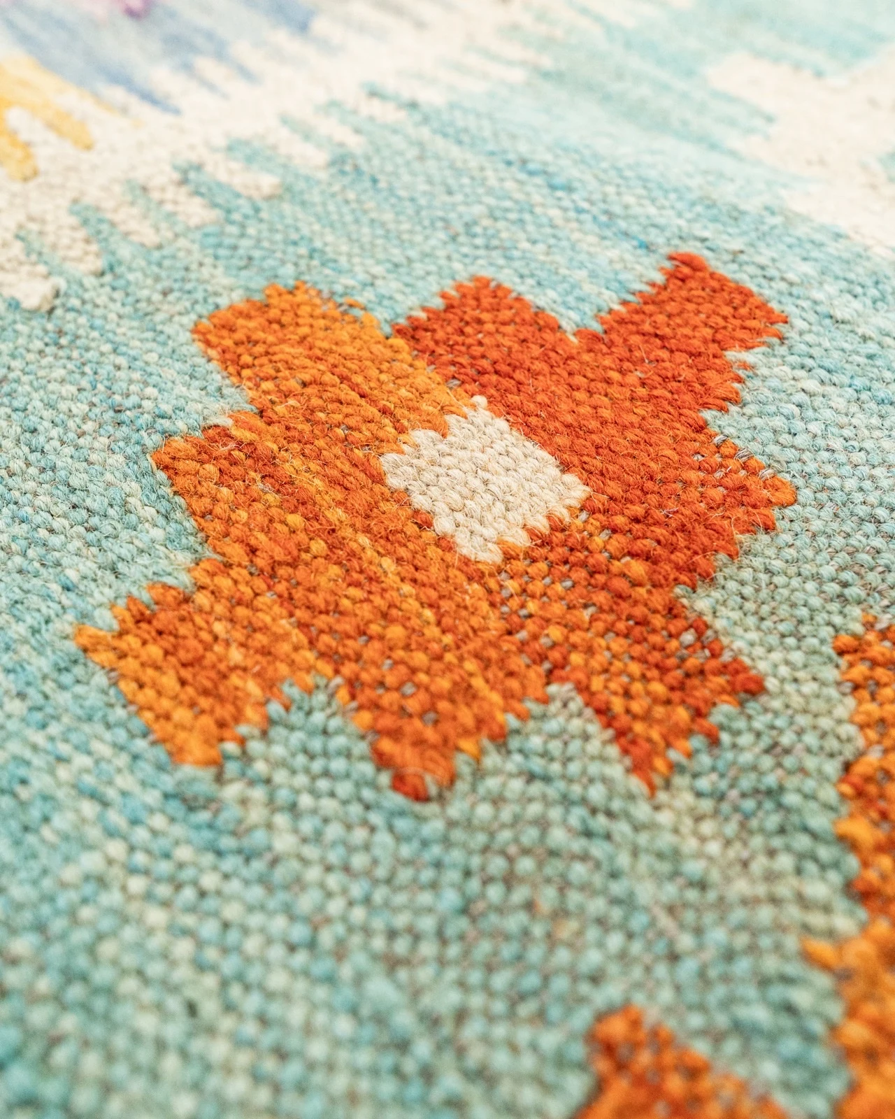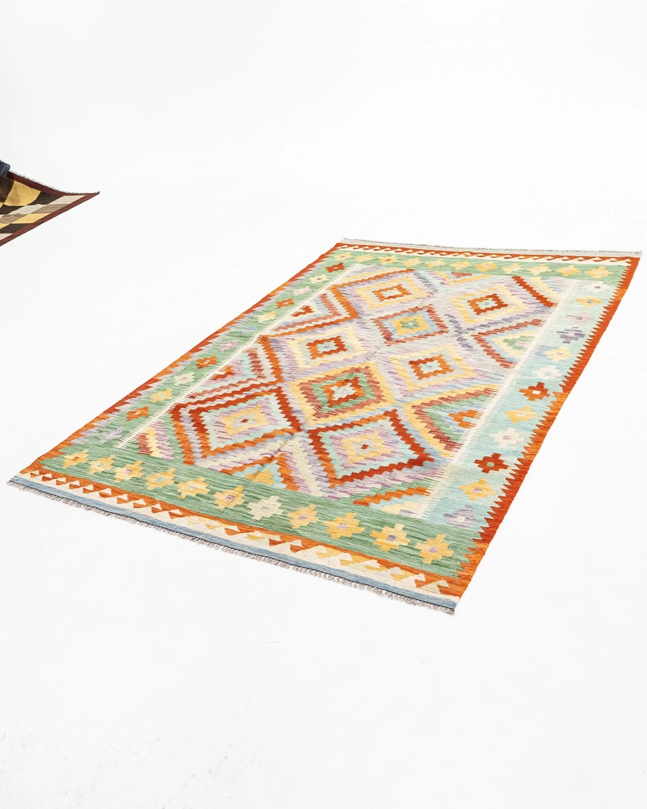 Tejido plano artesanal hecho a mano por comunidades nómadas, conocido por sus patrones geométricos y colores vivos.