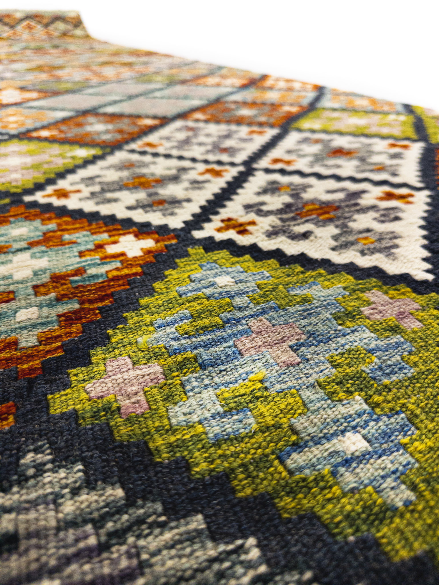 Etiquetas: Alargada, Colorida, Hecha a mano, Lana, Rombos, Tinturas naturales, Tribal