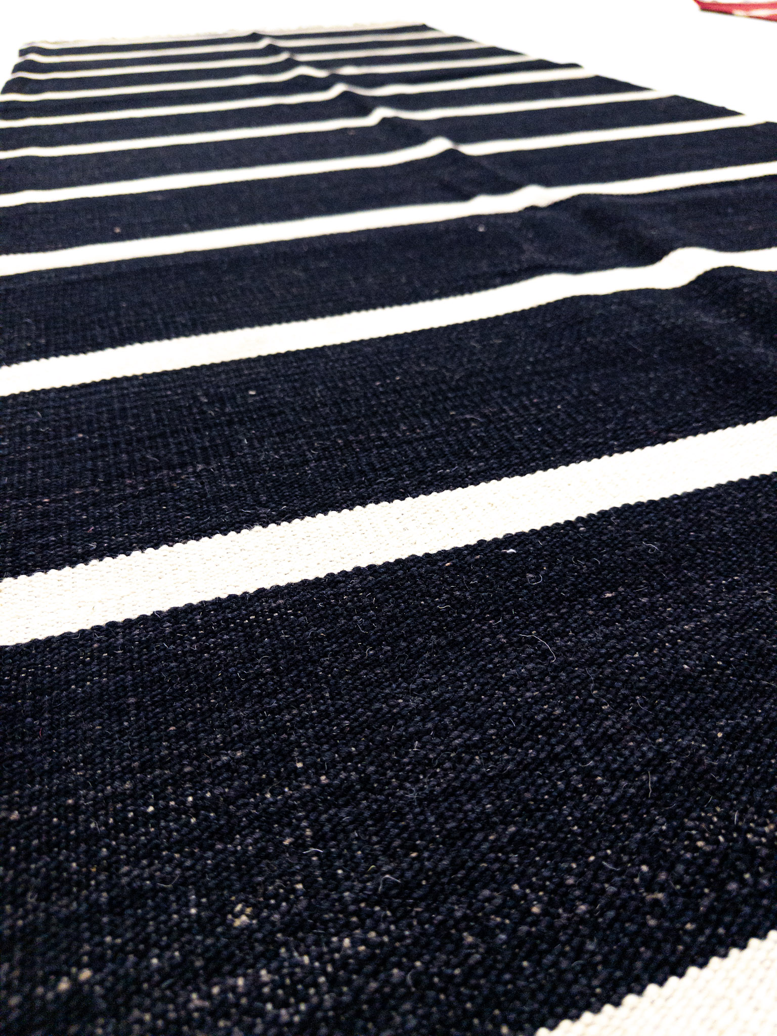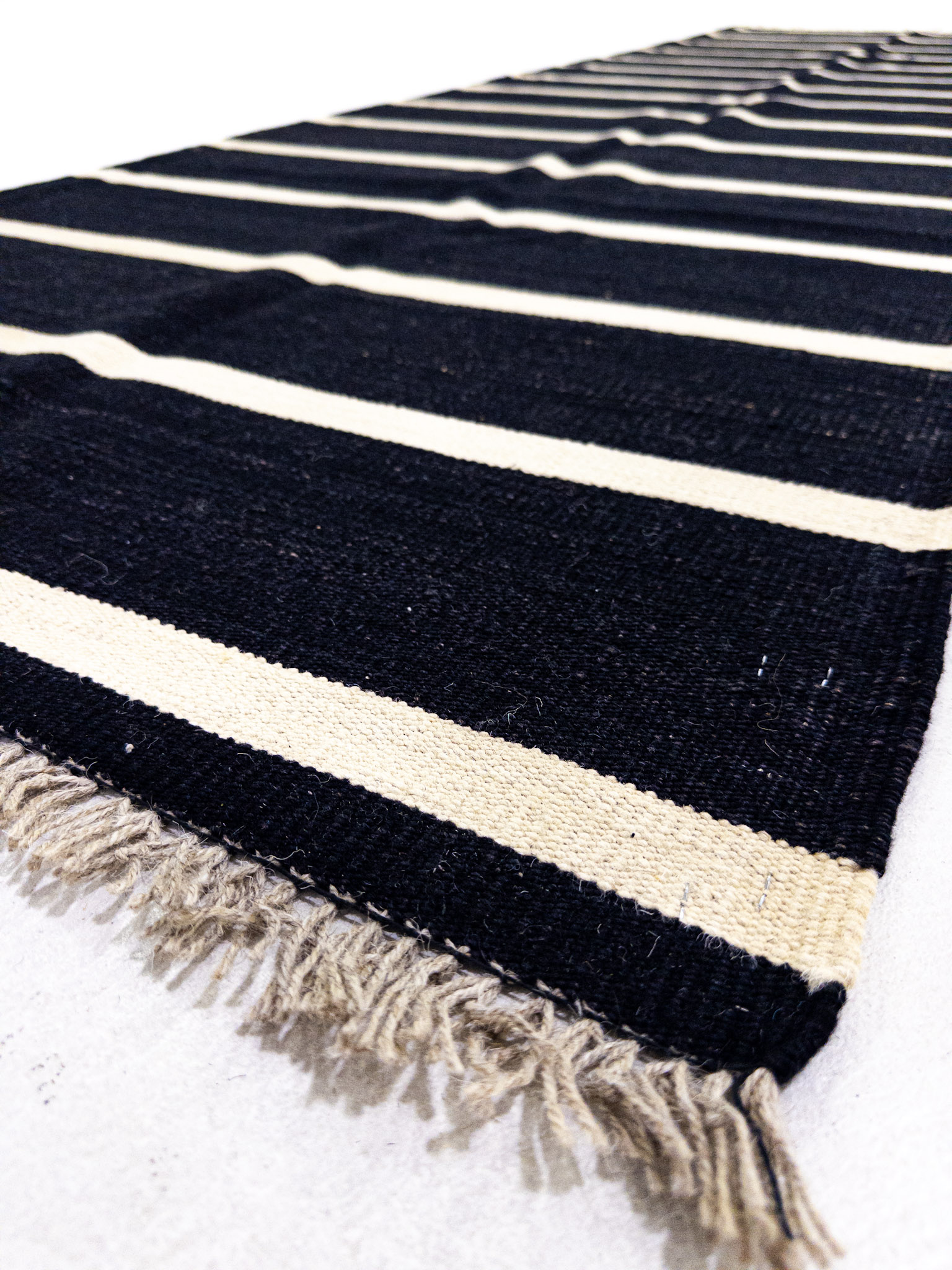 Etiquetas: Alargada, Blanco, Hecha a mano, Lana, Lineas, Moderna, Negra, Tinturas naturales