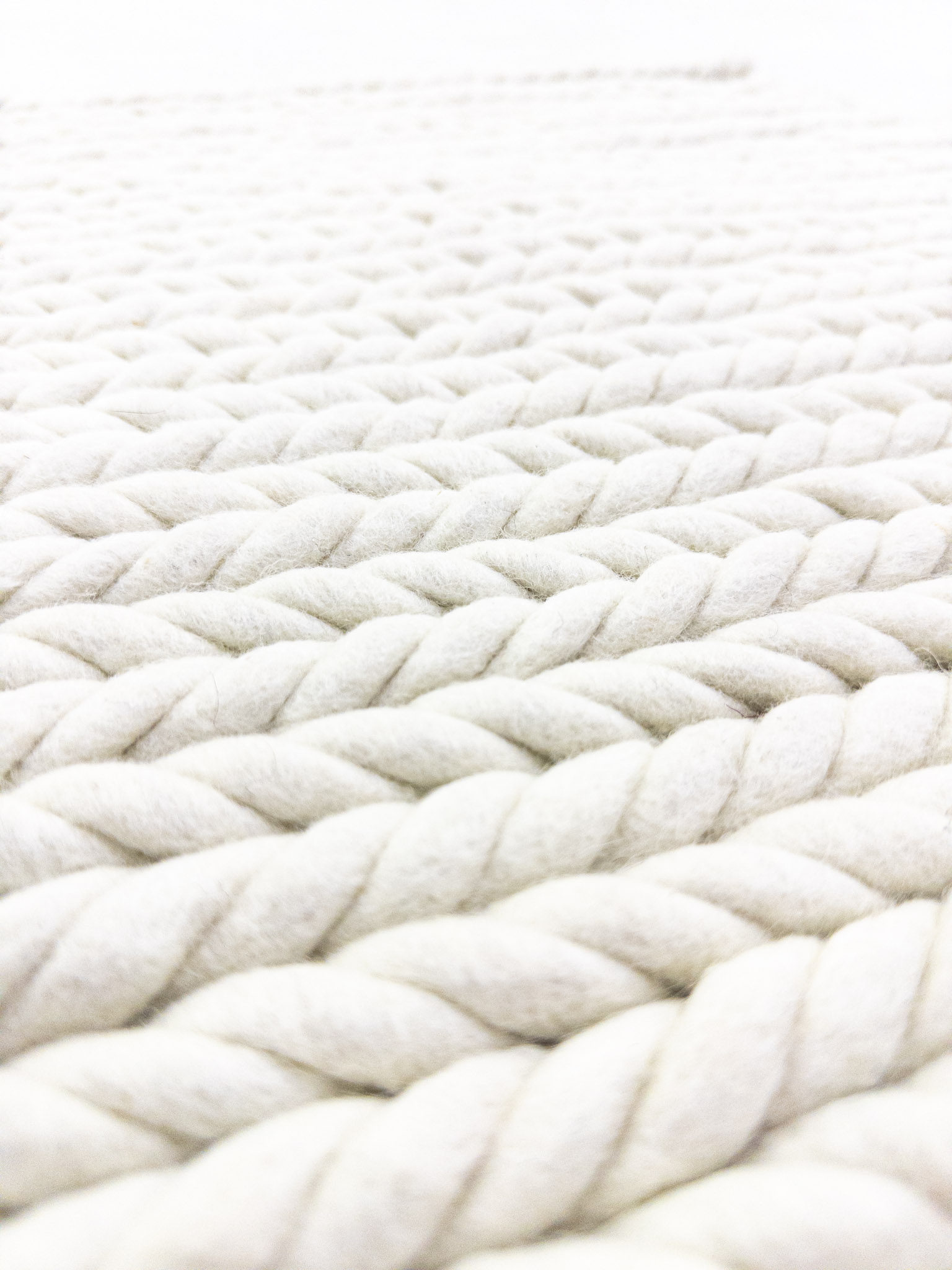 Etiquetas: Blanca, Clara, Hecha a mano, lana y polyester, llana, Pequeña, Sencilla, Un solo tono