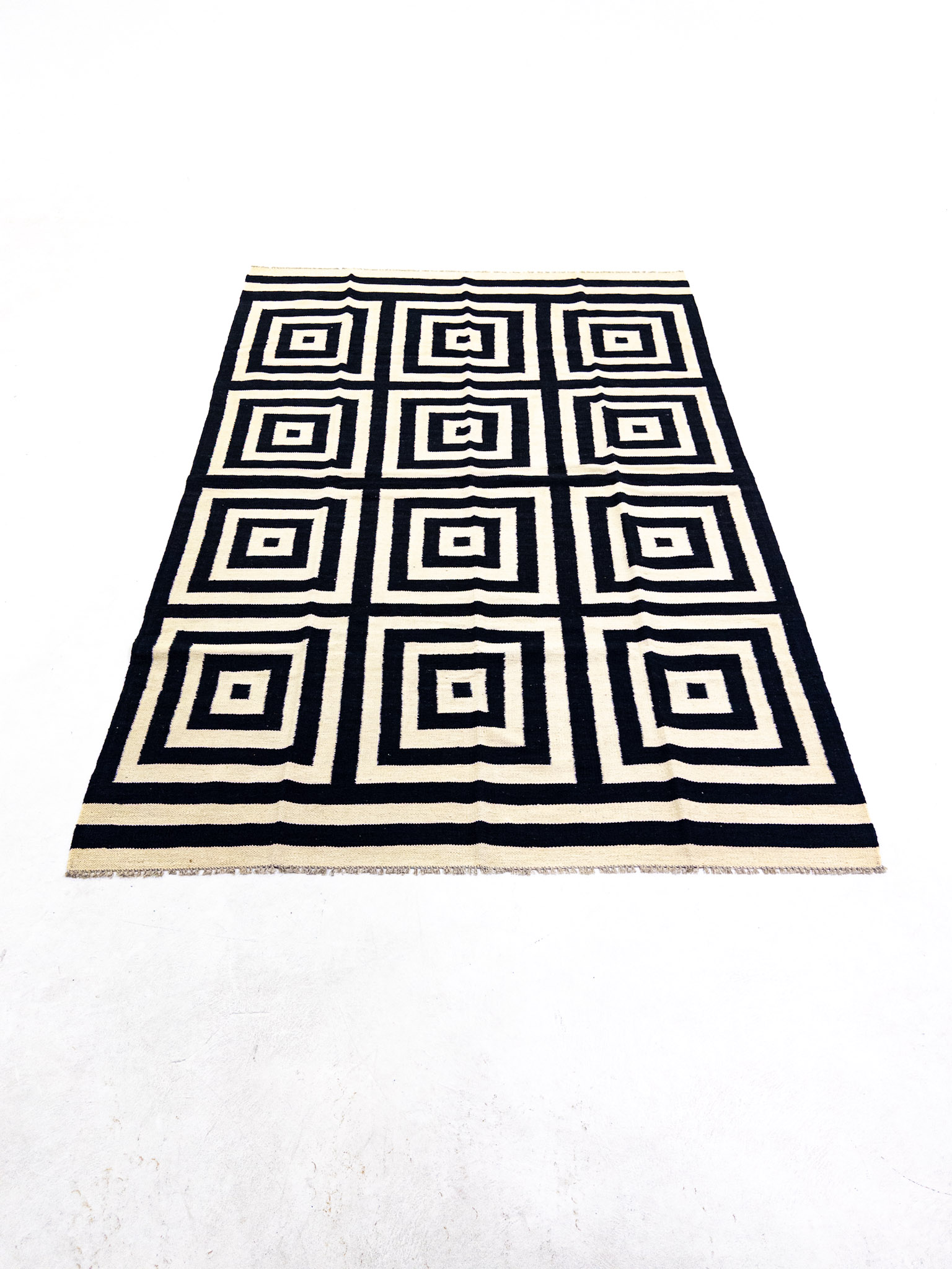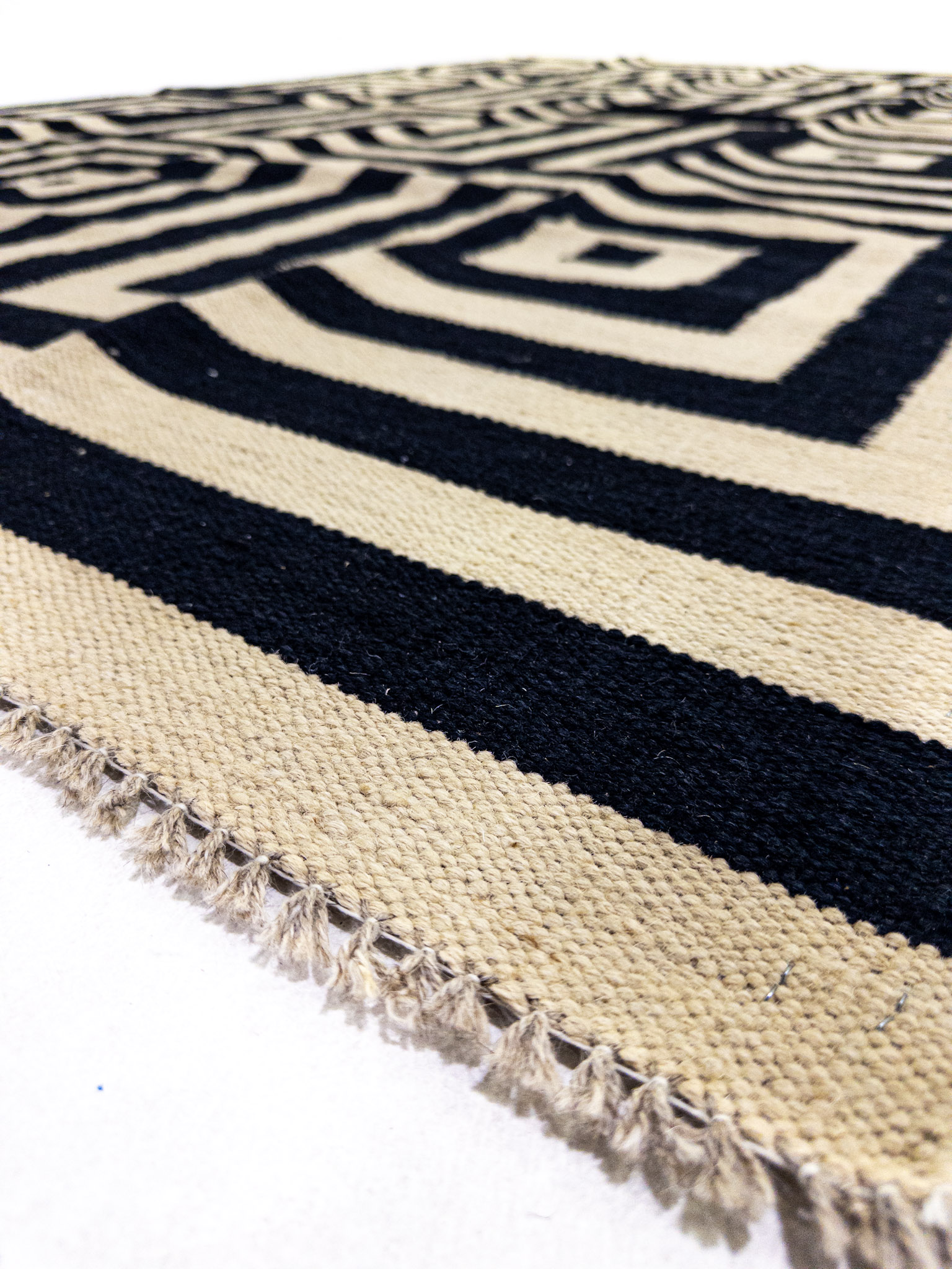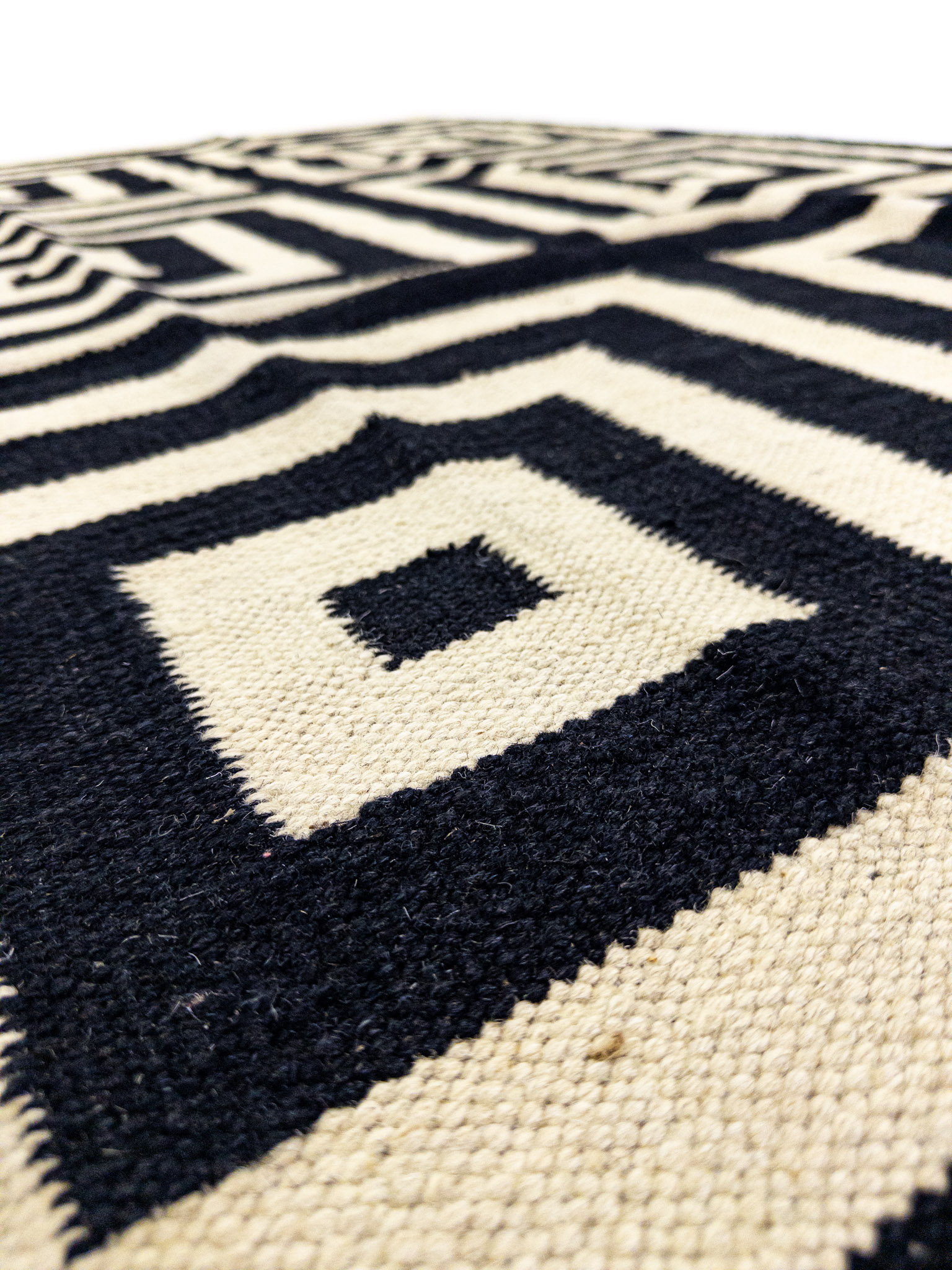 Etiquetas: Blanco y Negro, Cuadrados, Geométricas, Grande, Hecha a mano, Lana, Moderna, Tinturas naturales