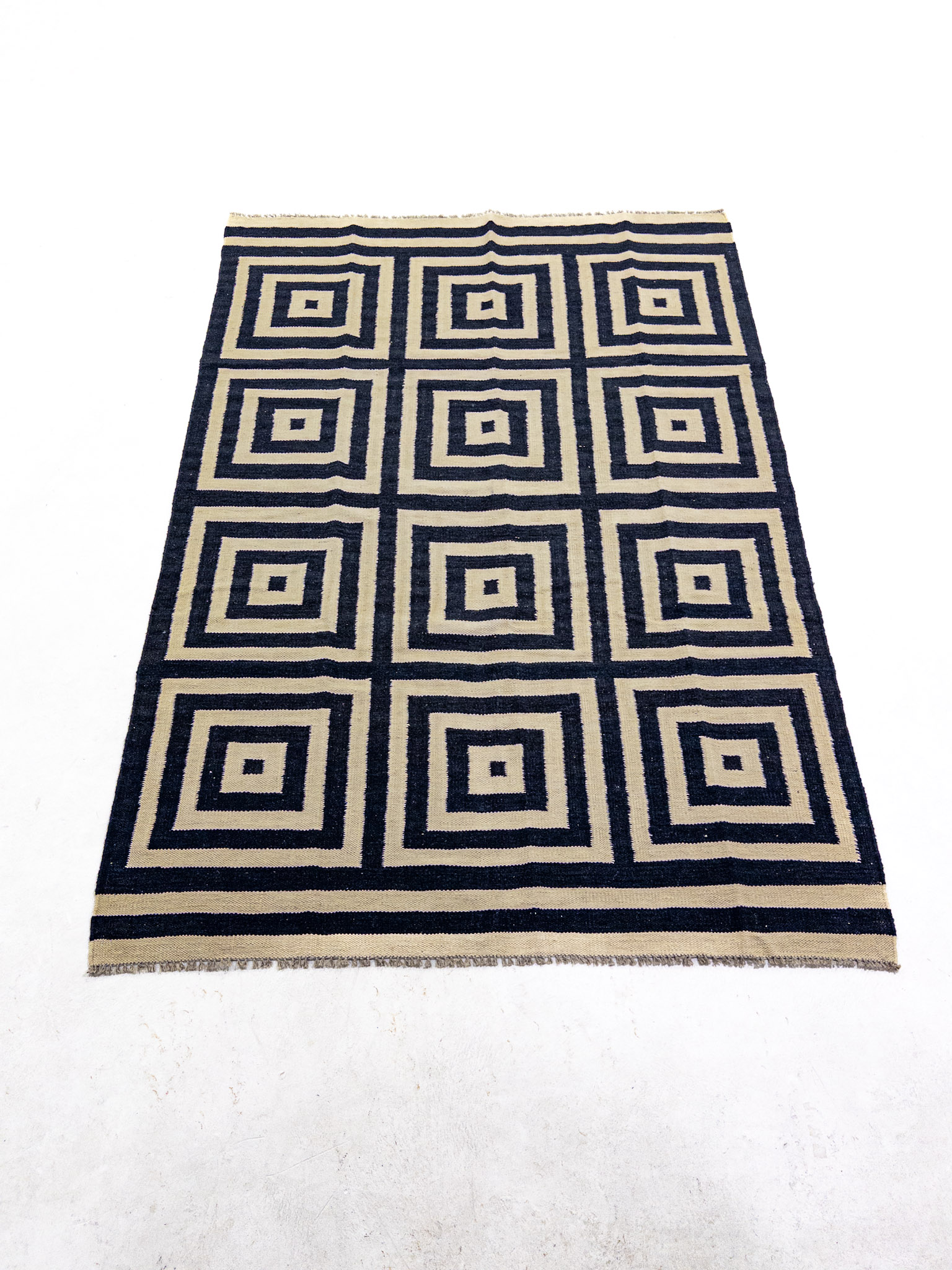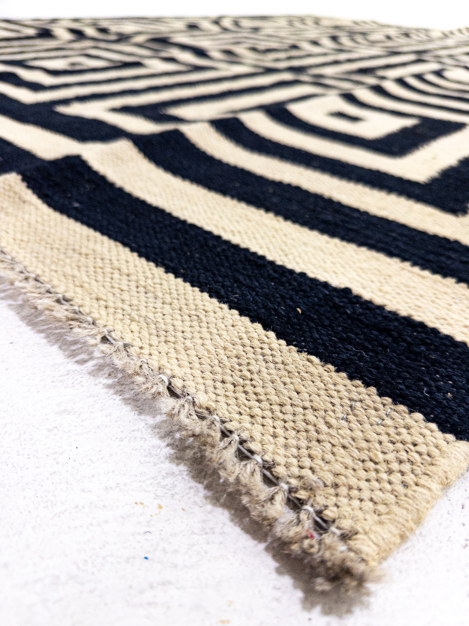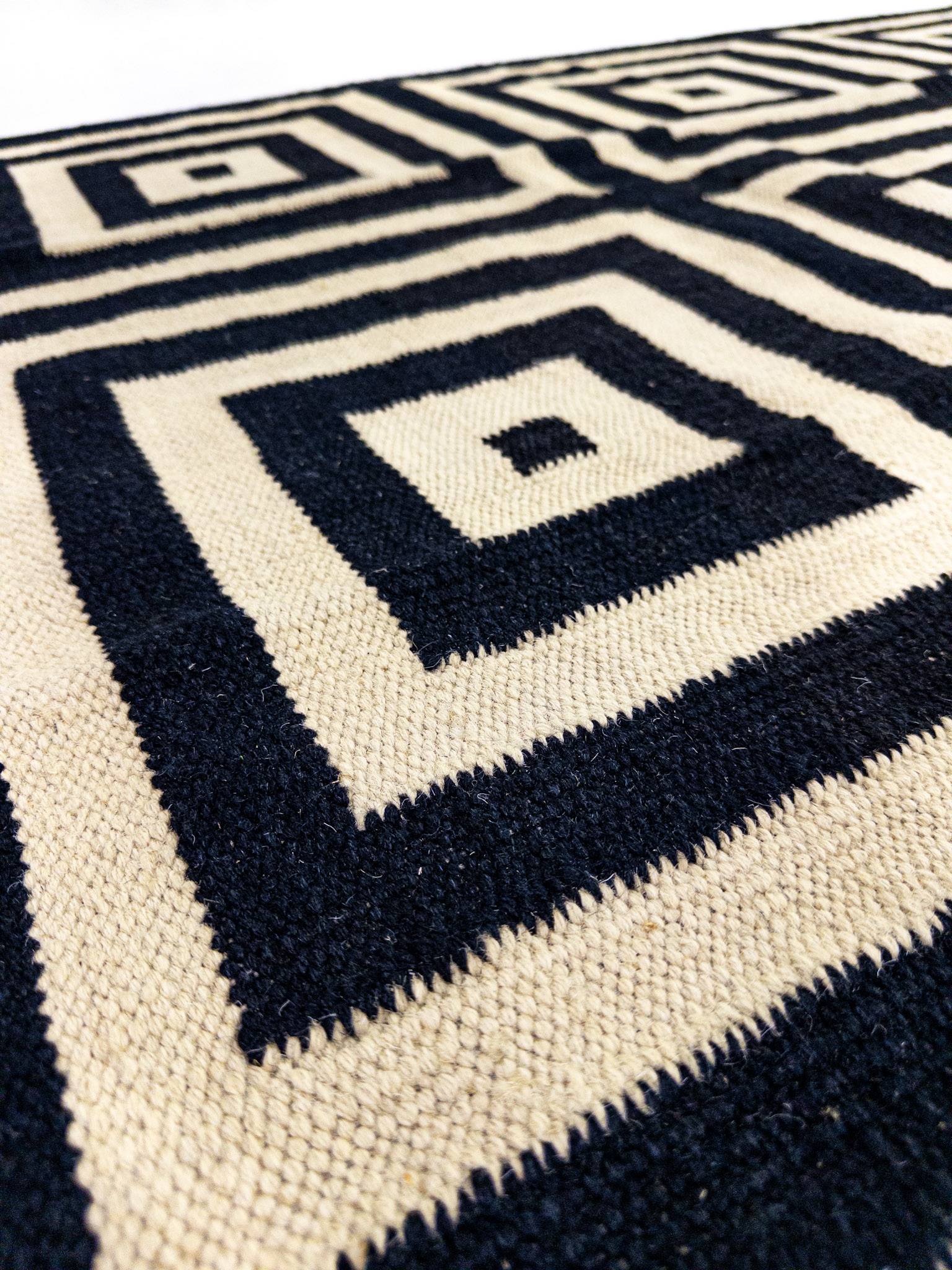 Etiquetas: Blanco y Negro, Cuadrado, Geometrica, Hecha a mano, Lana, Mediana, Moderna, Tinturas naturales