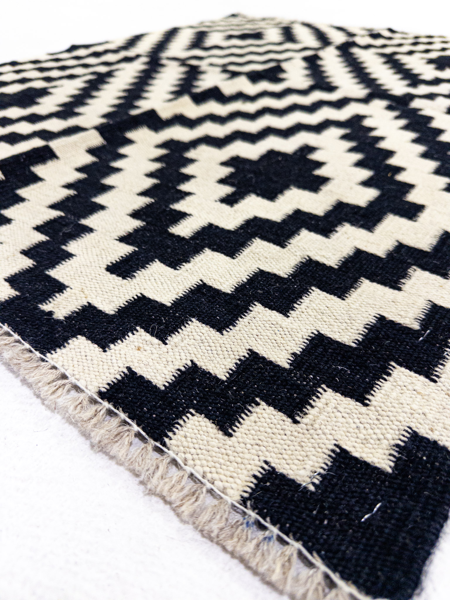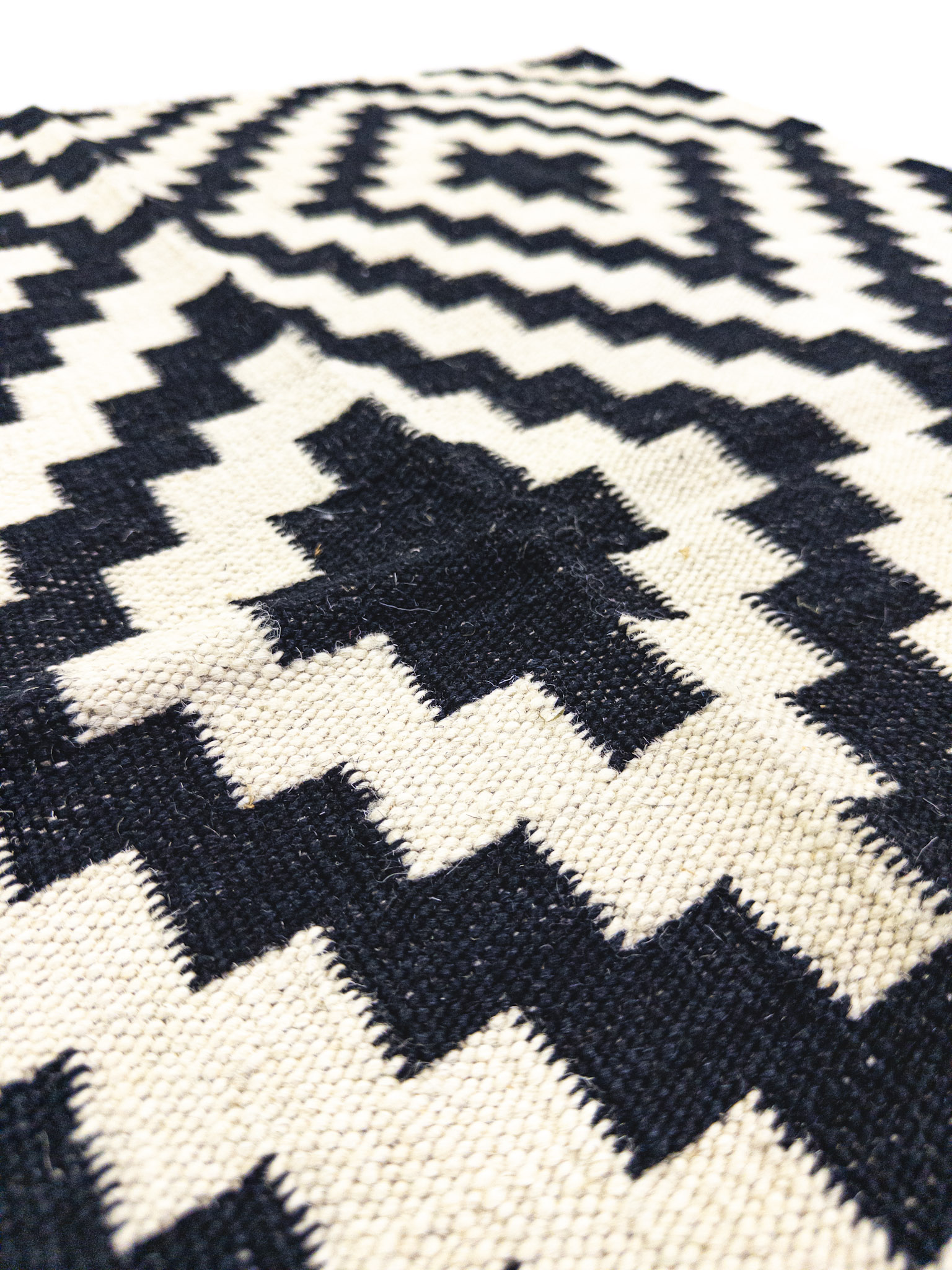Etiquetas: Blanco y Negro, Geometrica, Hecha a mano, Lana, Moderna, Pequeña, Rombos, Tinturas naturales